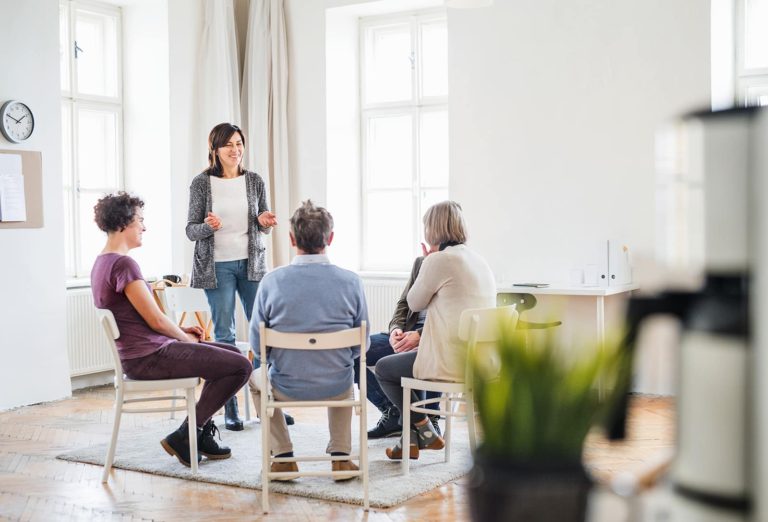 Se ofrece para pacientes hospitalizados y ambulatorios, se utiliza para reforzar el proceso de recuperación de la internación, y las ambulatorias se utilizan para consolidar la recuperación y evitar las recaídas sobre todo en los programas de consumo de sustancias y adicciones. Los grupos de apoyo se reúnen de forma presencial o virtual, dependiendo el caso a través de nuestra plataforma de teleconsulta.